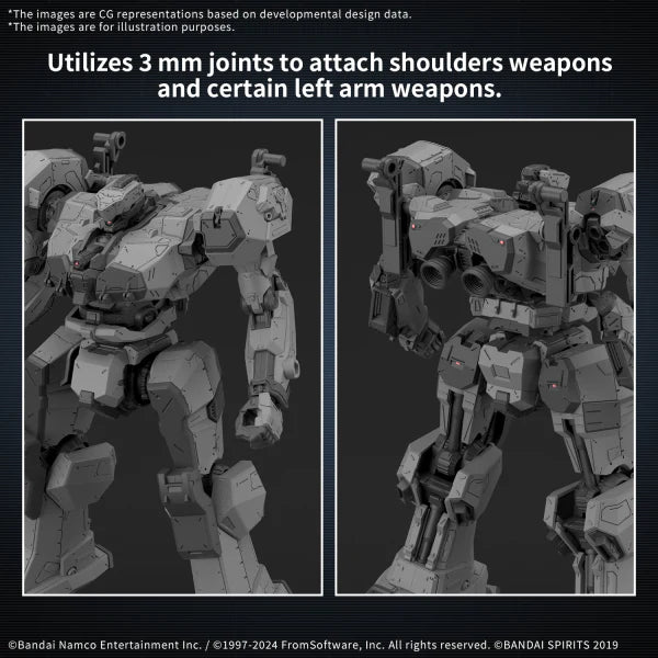 Bandai brings items from "Armored Core VI Fires of Rubicon" into their "30MM (30 Minutes Missions)" series! Based on the series' key concepts of simple assembly and customization, the Balam Industries BD-011 Melander is now available! The head, core, arms, and legs all feature the same structure as seen in the game, allowing you to enjoy assembly with the plastic model. 3mm joints are used to attach both shoulder weapons and some left-hand weapons, allowing for a variety of assembly possibilities. The MG-014 LUDLOW, which changes shape when equipped on either the right or left, comes with parts for both sides, and you can choose which side to assemble it for. Order it for your own collection today![Includes]:MG-014 LUDLOW (x1 set)Joint parts (x1 set)Stickers