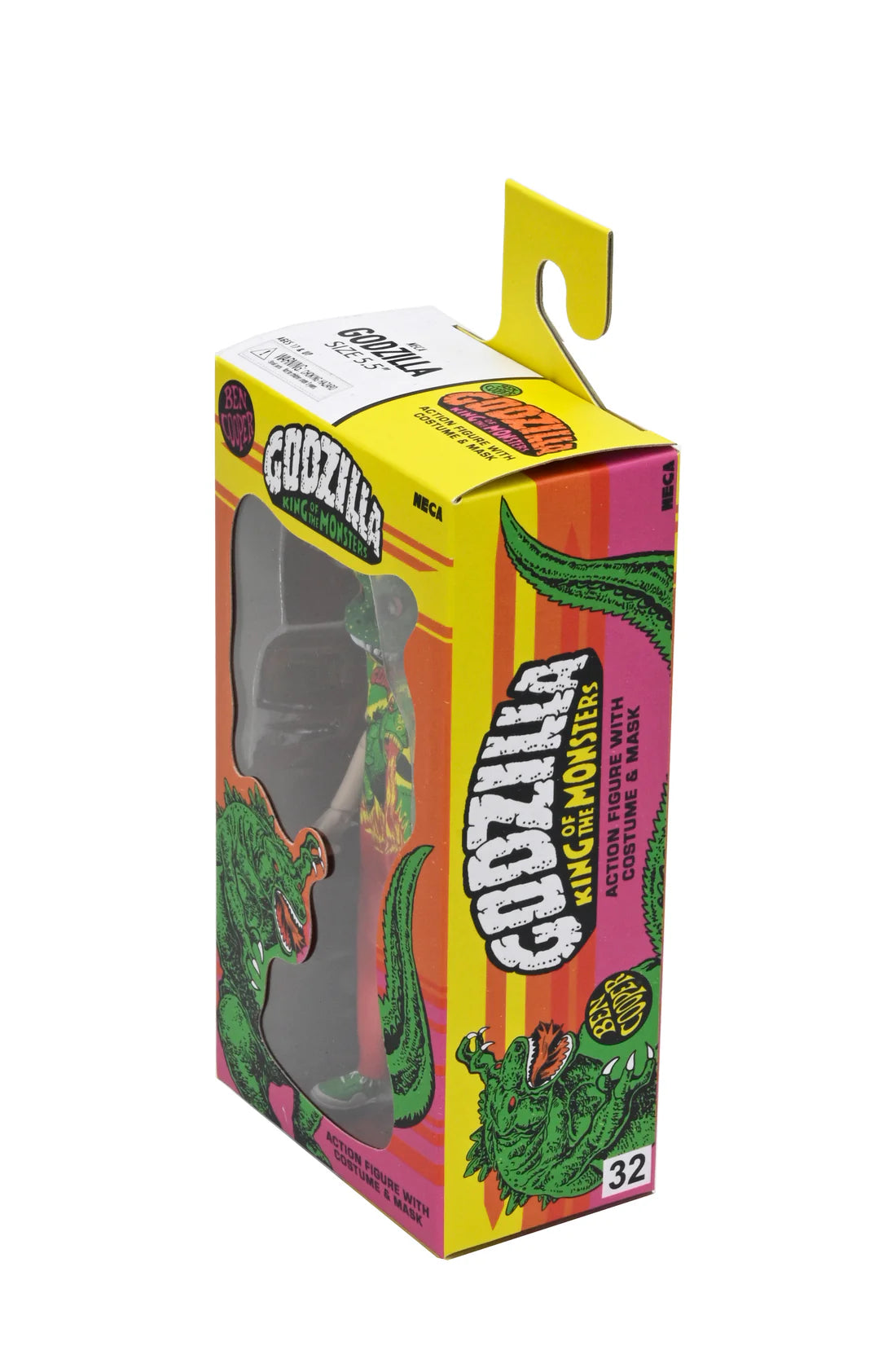 Trick or treat! Halloween continues at NECA with the next series in the Ben Cooper Costume Kids Collection. Series 7 features all-new trick-or-treaters based on the licensed kids' costumes from two of the largest Halloween costume manufacturers from the 1950s through the '80s. This new five-figure lineup includes classic Ben Cooper and Collegeville costumes along with NECA's own designs in the style of those costumes as if they were produced today. Standing approximately 6" tall, these fully poseable figures include 50th Anniversary Jaws, Return of the Living Dead's Tarman, Planet of the Apes' Warrior, The Fly, and Godzilla. Wearing a mask and soft goods clothing replicating the vinyl look of a classic costume, each playful figure comes complete with a unique trick-or-treat bag or bucket accessory. Every figure is packaged separately in a retro-style window box that pays homage to the original costume packaging.
