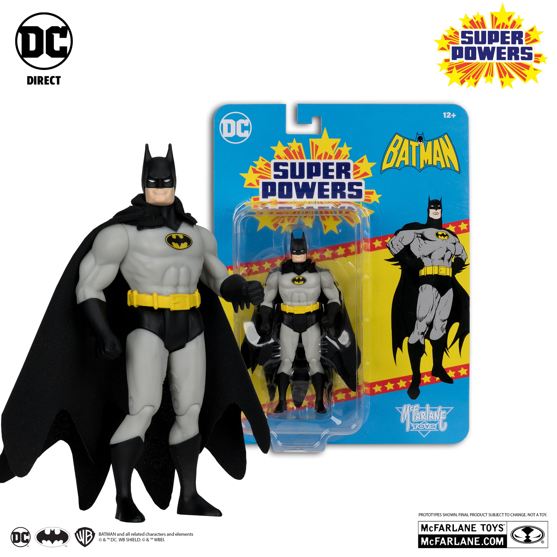 Continuing the legacy of the beloved DC SUPER POWERS™ line comes a brand new batch of your favorite heroes and villains! Each Classic 4.5" scale DC SUPER POWERS™ figure features articulation for awesome posing and play. Batman is showcased in DC SUPER POWERS™ themed blister card packaging. Collect all McFARLANE TOYS™ DC SUPER POWERS™ figures and vehicles!