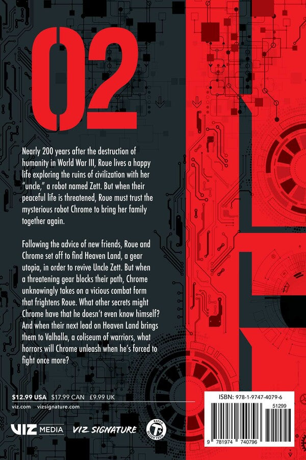 Following the advice of new friends, Roue and Chrome set off to find Heaven Land, a gear utopia, in order to revive Uncle Zett. But when a threatening gear blocks their path, Chrome unknowingly takes on a vicious combat form that frightens Roue. What other secrets might Chrome have that he doesn’t even know himself? And when their next lead on Heaven Land brings them to Valhalla, a coliseum of warriors, what horrors will Chrome unleash when he’s forced to fight once more?
